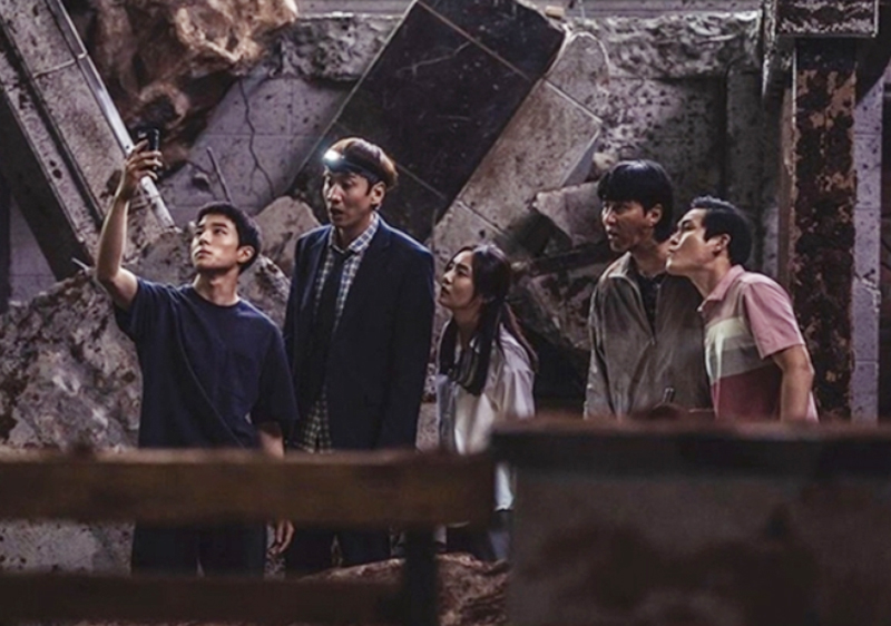 빌라가 통째로 아래로 추락하고 그 아래에 갇힌 사람들은 어젯밤 집들이로 늦잠을 잔 김성균과 직장 동료 이광수 김혜준 싸가지 이웃 차승원과 그의 아들 이렇게 다섯이 싱크홀로 인해 지하에 고립이 됩니다 지하 깊은 곳이라 전화기도 터지지 않고 어떻게 살아서 나갈지 막막하기만 합니다